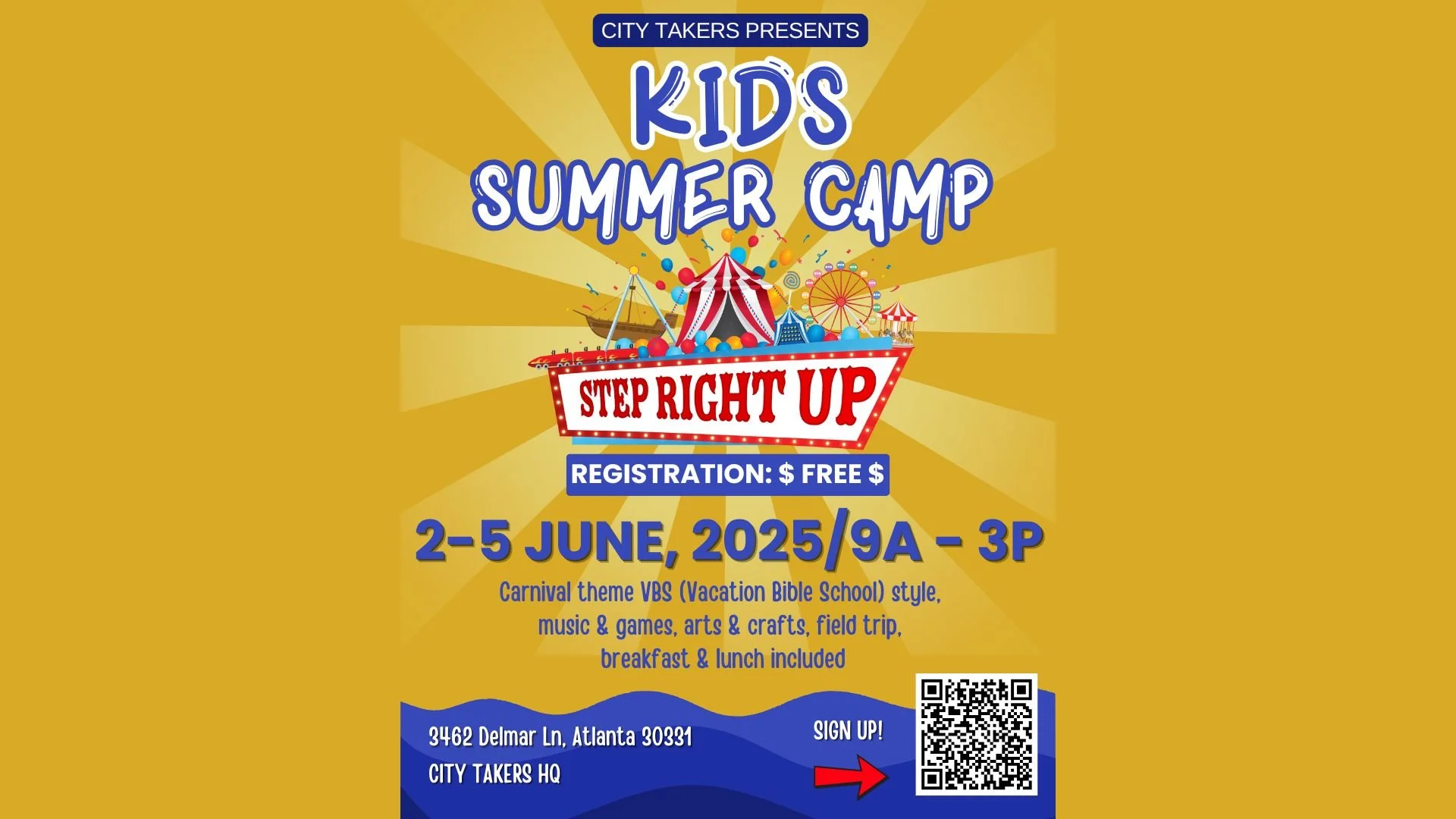 Free summer day camp for students 5 - 12 years old. Bible series, games, music, crafts and field trip! Sign up today!